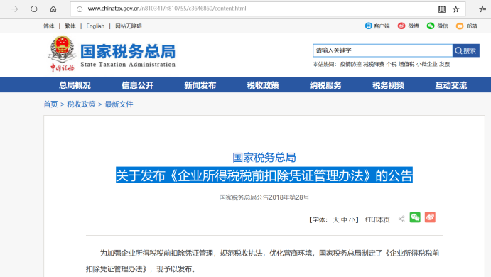附:國家稅務(wù)總局關(guān)于發(fā)布《企業(yè)所得稅稅前扣除憑證管理辦法》的公告 國家稅務(wù)總局公告2018年第28號 ? ?